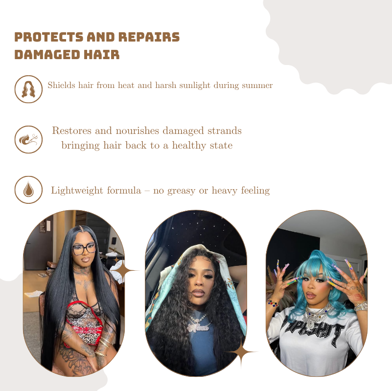 Not only does it nourish and strengthen your hair, but it also protects against sun damage 🌞 and high heat 🔥 — perfect for those hot summer days!